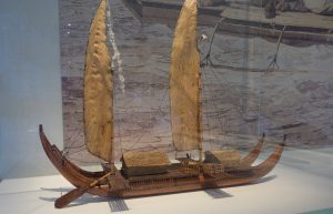 Vor dem Museum kann man den geborgenen Anker von James Cook in Original betrachten. Gefunden wurde dieser vor Tautira, dem Ankerplatz bei Cook`s zweitem Besuch auf Tahiti. Im August 1783 ankerten die „Resolution“ und die „Adventure“ etwa 2 NM vor Tautuira of der Ostseite Tahitis. Auf Grund starker Strömungen, gerieten sie in Gefahr aufs Riff zu laufen und setzten die Segel. In der Hitze des Moments blieben vier Anker zurück. Am nächsten Tag versuchten sie diese wieder zuf finden. Allerdings fanden sie nur einen wieder. 200 Jahre später, 1978, wurde dann einer von einem britisch – neuseeländischen Team geborgen. Aus einer Tiefe von 40 Metern, halb versteckt in den Korallen. Also ein Stück Seefahrtsgeschichte direkt vor dem Museum.